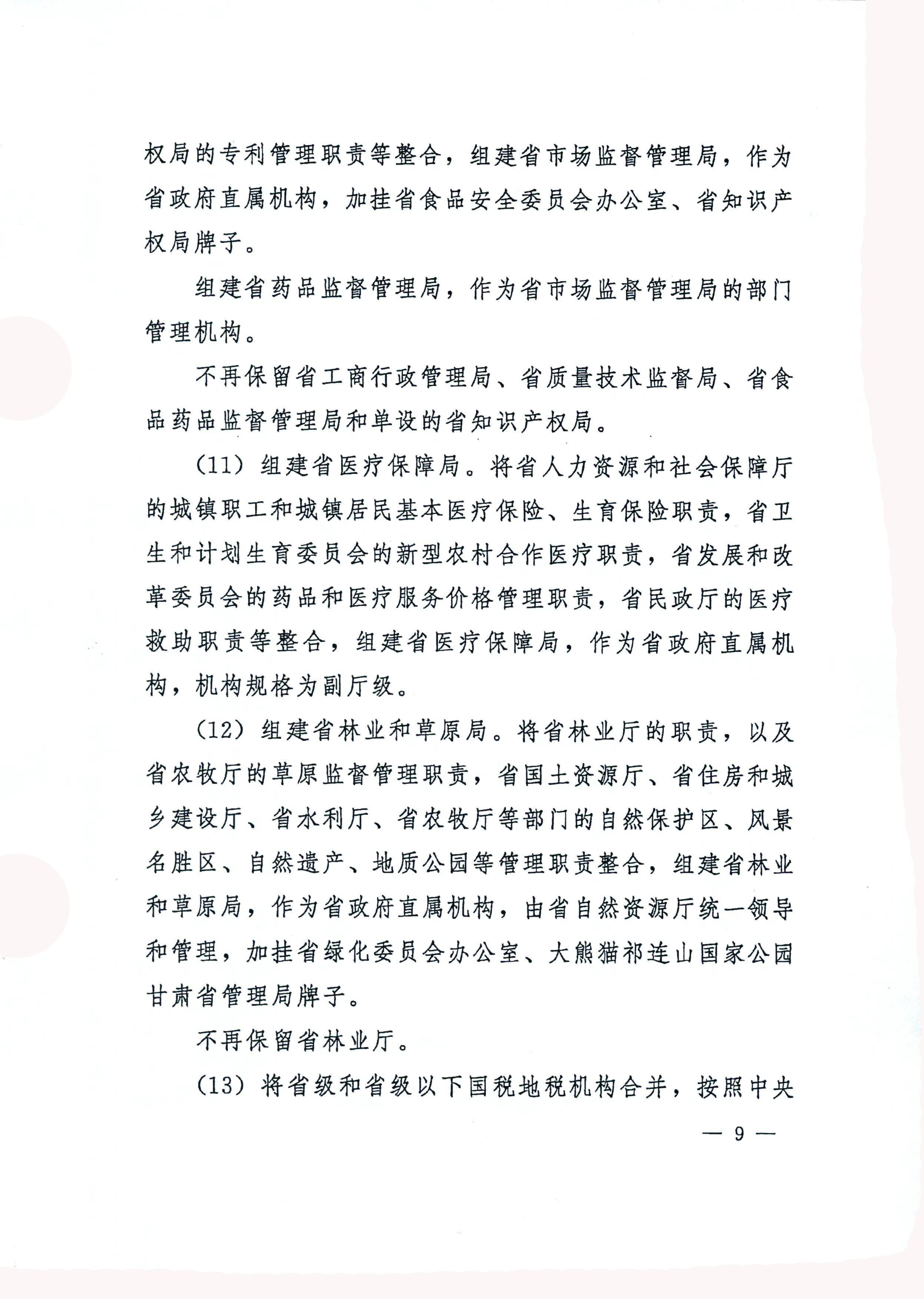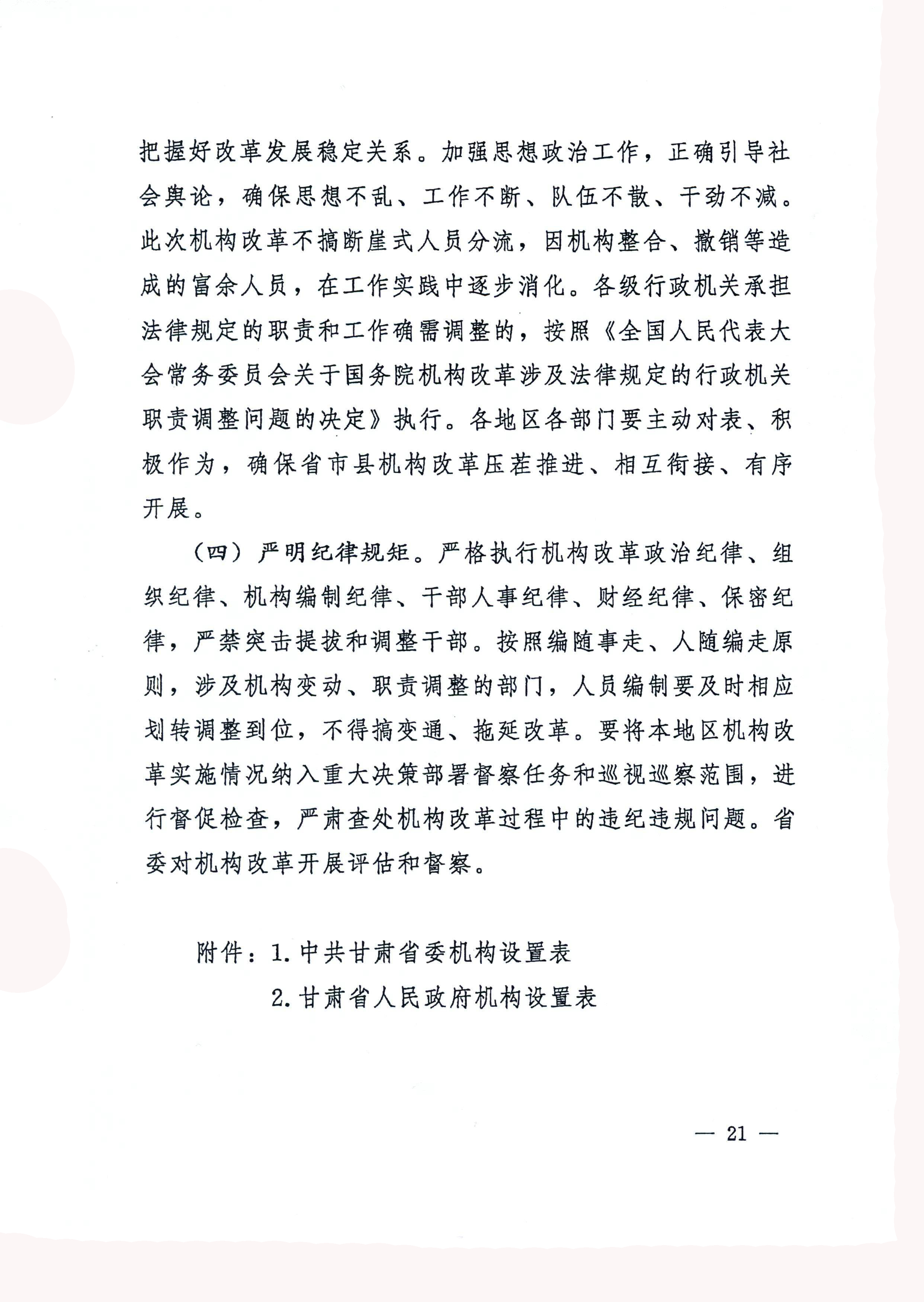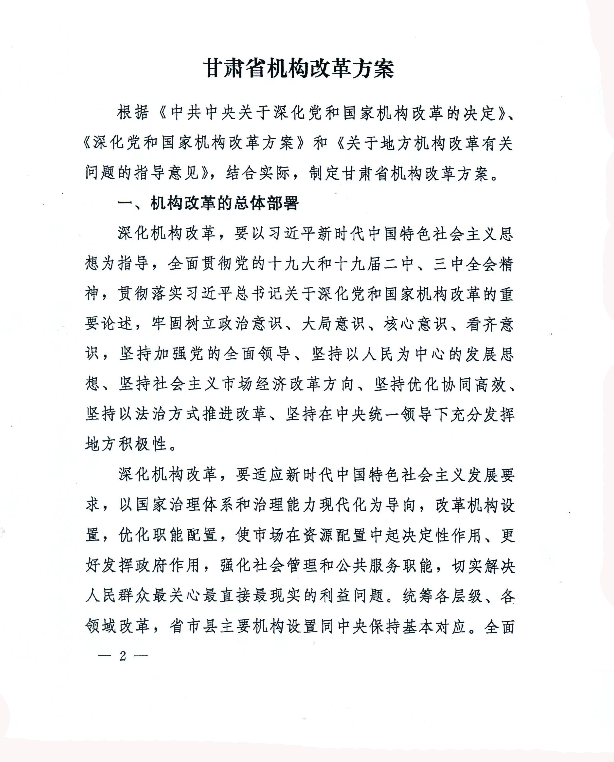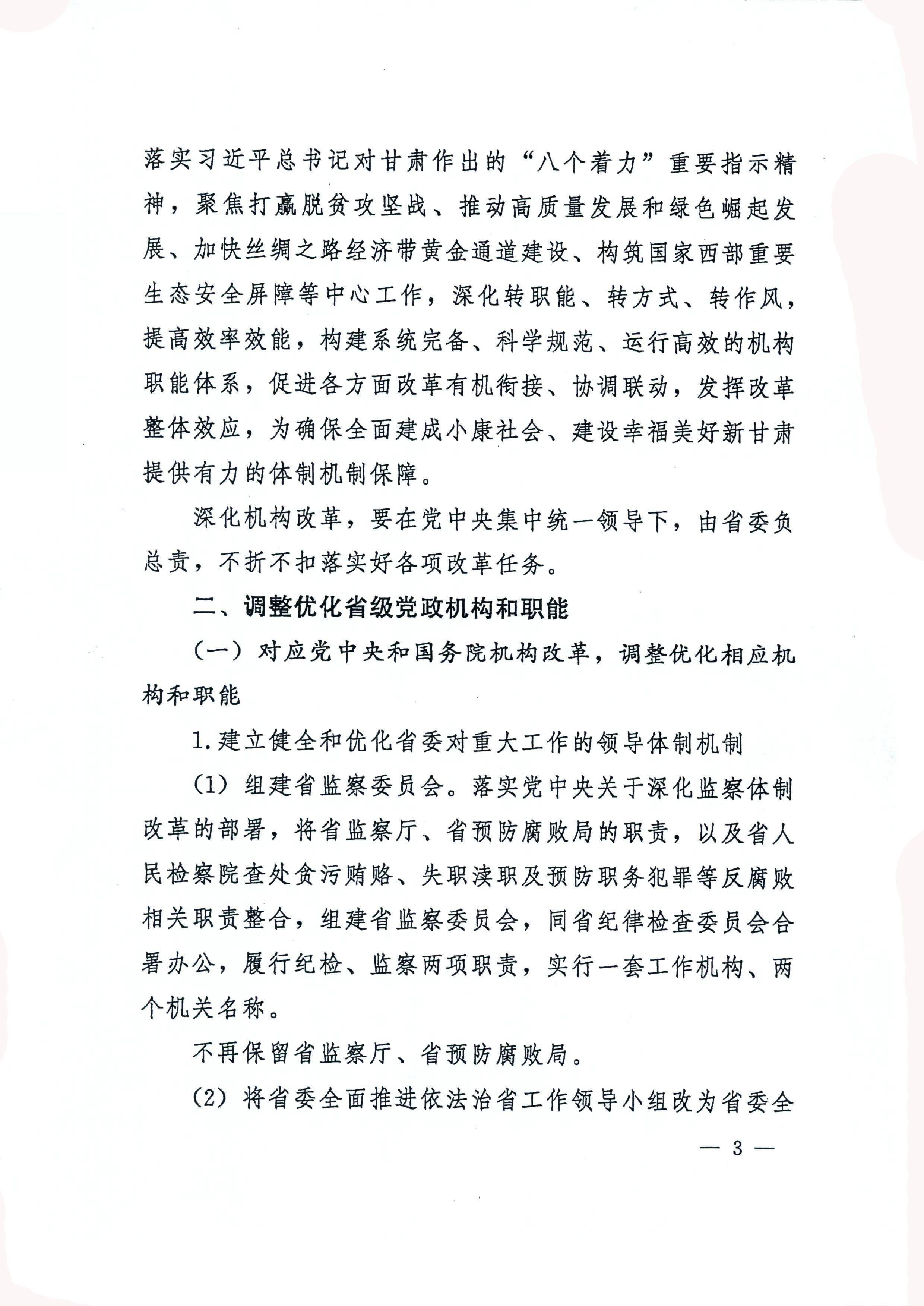 中共中央办公厅 国务院办公厅印发《甘肃省机构改革方案》