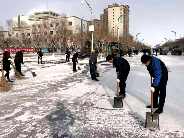 瑞雪兆丰年 扫雪保安全--市编办组织干部职工开展扫雪活动