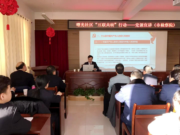 为进一步推进“互联共转”行动深入开展,2月28日上午,市委编办党支部组织部分党员干部参加了曙光社区以“如何理解中国共产党人的初心和使命”为主题的党课宣讲活动,市检察院李延俊委员应邀作宣讲报告。
